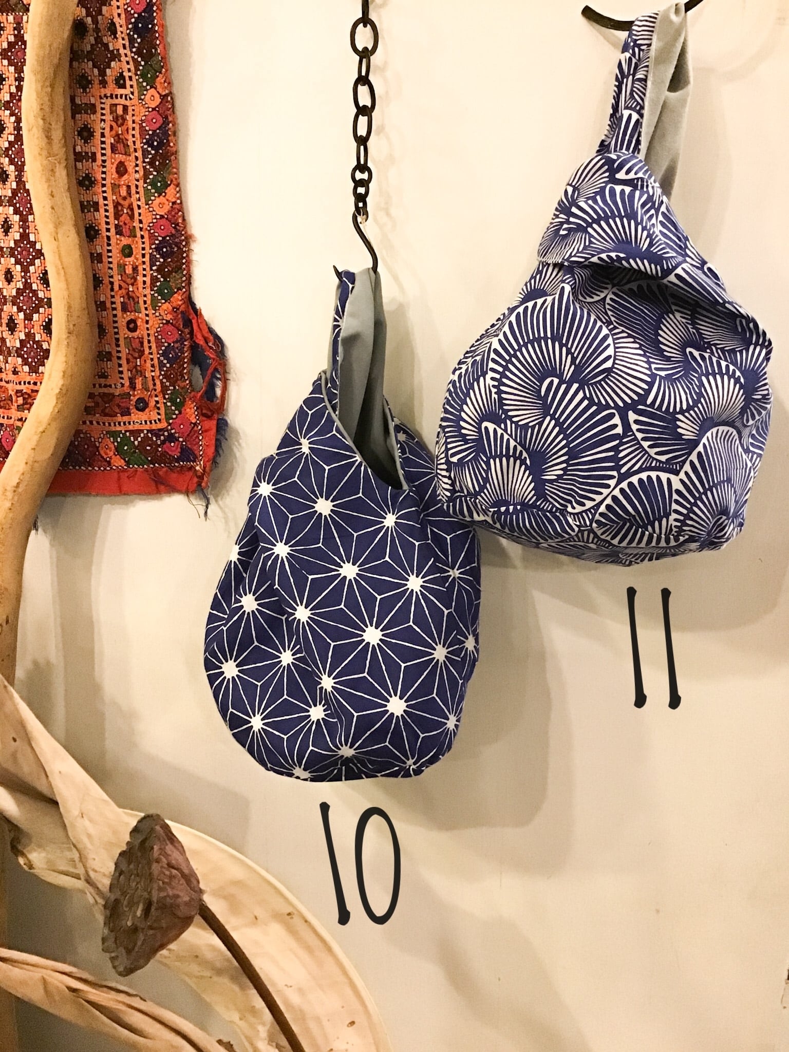 持ち手の長さが左右違う、AMPLOP定番人気のしじみ型バッグ。短い方に長い持ち手を通すとコロンとした丸みが出るのが魅力的。