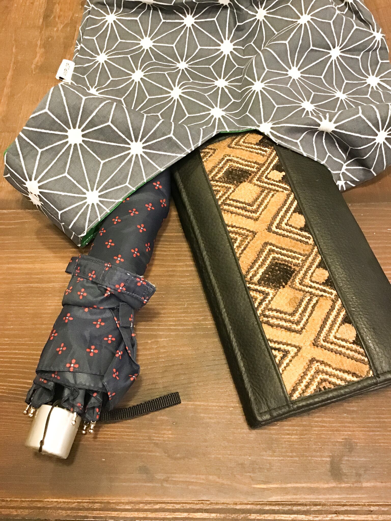お弁当、タンブラー、折りたたみ傘も入ります。持ち手がひと続きなので、丈夫で軽いです。意外に大容量で程よいボリューム感!ということに驚かれ、色違いやプレゼントを買いに再来店される方もいらっしゃいます。