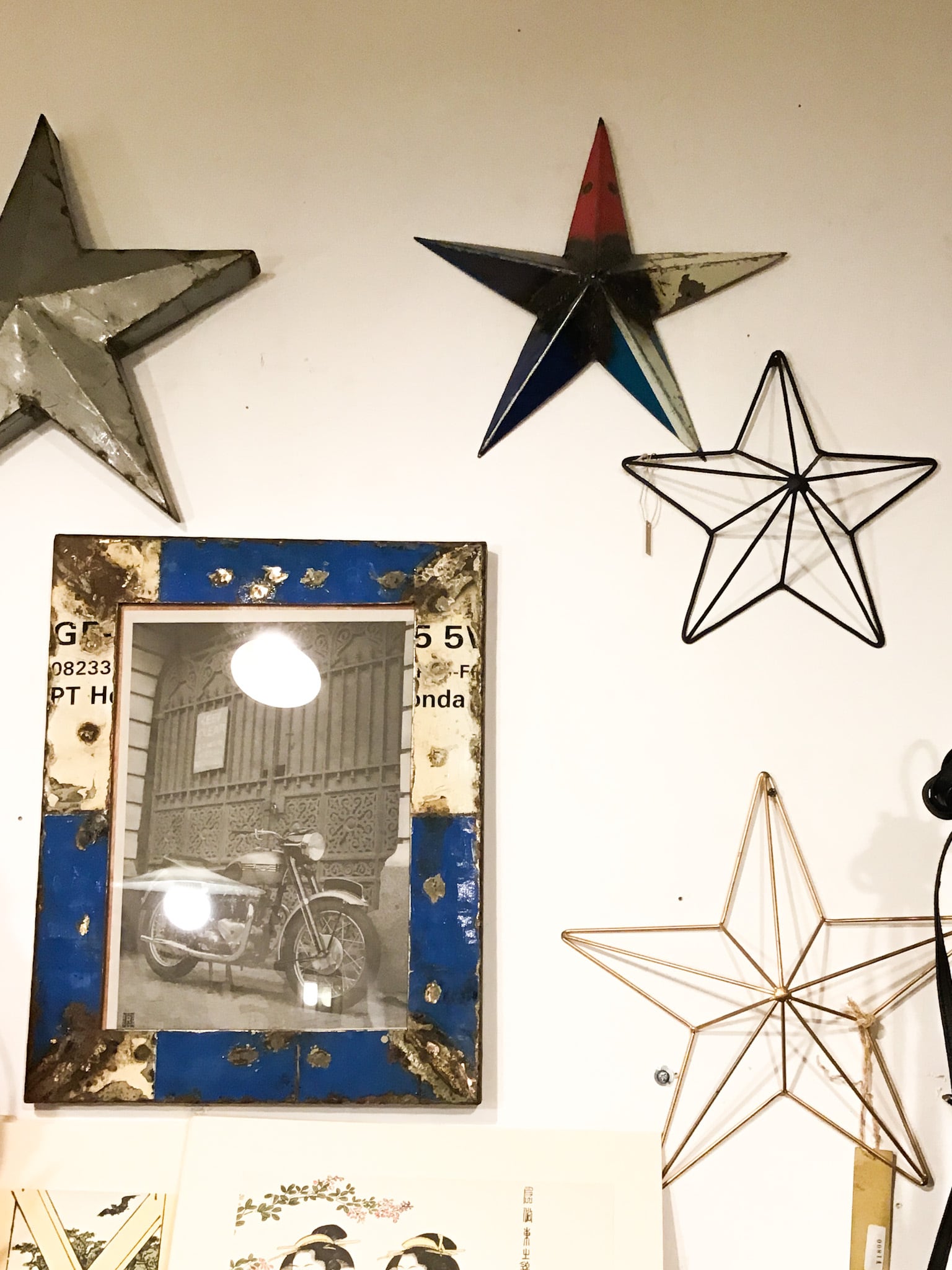 オリジナルのアイアン星オーナメントは、白にもウッド系にも馴染みます。アイアンなので、ブリキや古材、古道具とも相性が良いです。店内にも至る所にディスプレイしています。