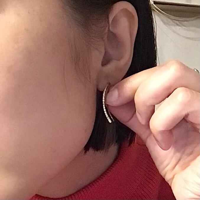 通した後にひっくり返してもらえば耳のフチに添うようなデザインになりオシャレです。また、そのまま通すだけでももちろんOKです。